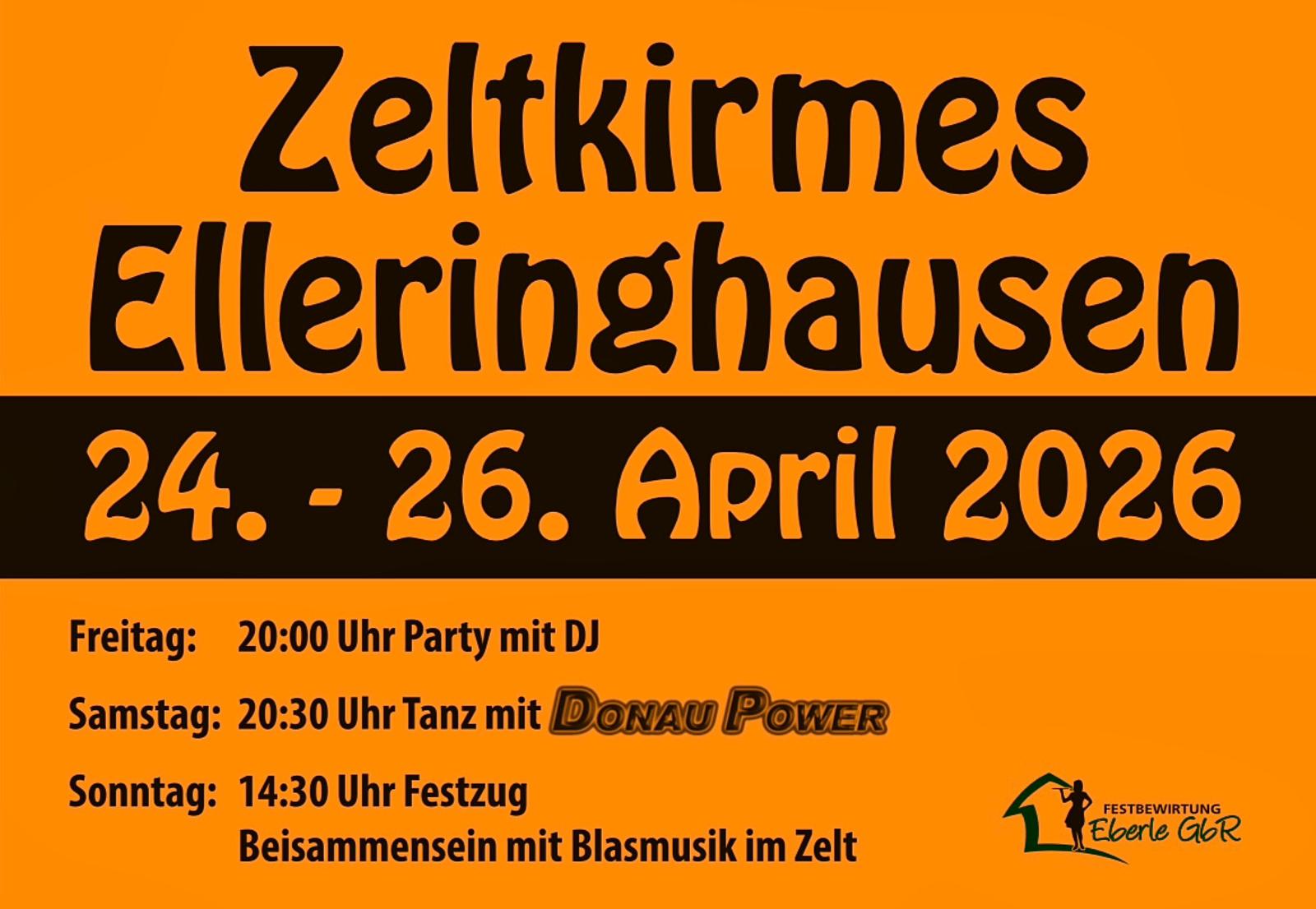 Los geht`s am Freitagabend zur Kirmeseröffnung mit DJ ab 20:00 Uhr im Festzelt vor dem Feuerwehrhaus. Am Samstagabend laden die Elleringhäuser um 19:00 Uhr zum Zeltgottesdienst mit Pfarrer Matthias Westerweg ein. Im Anschluss spielt die Liveband „Donau Power“ zum Tanz auf und mit allen Kirmesfans wollen die Elleringhäuser bis tief in die Nacht feiern. Für das leibliche Wohl und kühle Getränke sorgt die Festbewirtung Eberle GbR.