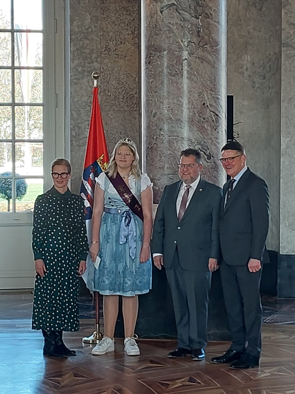 Am 22. November 2025 durfte unsere diesjährige Apfelkönigin Emma Nagel Elleringhausen auf ganz besonderer Bühne vertreten: Beim Treffen der Hessischen Hoheiten im Schloss Biebrich in Wiesbaden. Ministerpräsident Boris Rhein hatte die Hoheiten aus ganz Hessen zu einem feierlichen Empfang geladen, um das Engagement für Tradition, Kultur und Brauchtum zu würdigen.