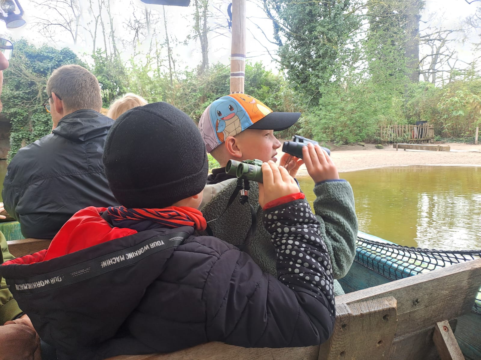 Lukas und Moritz beobachten die Tiere mit ihren Ferngläsern